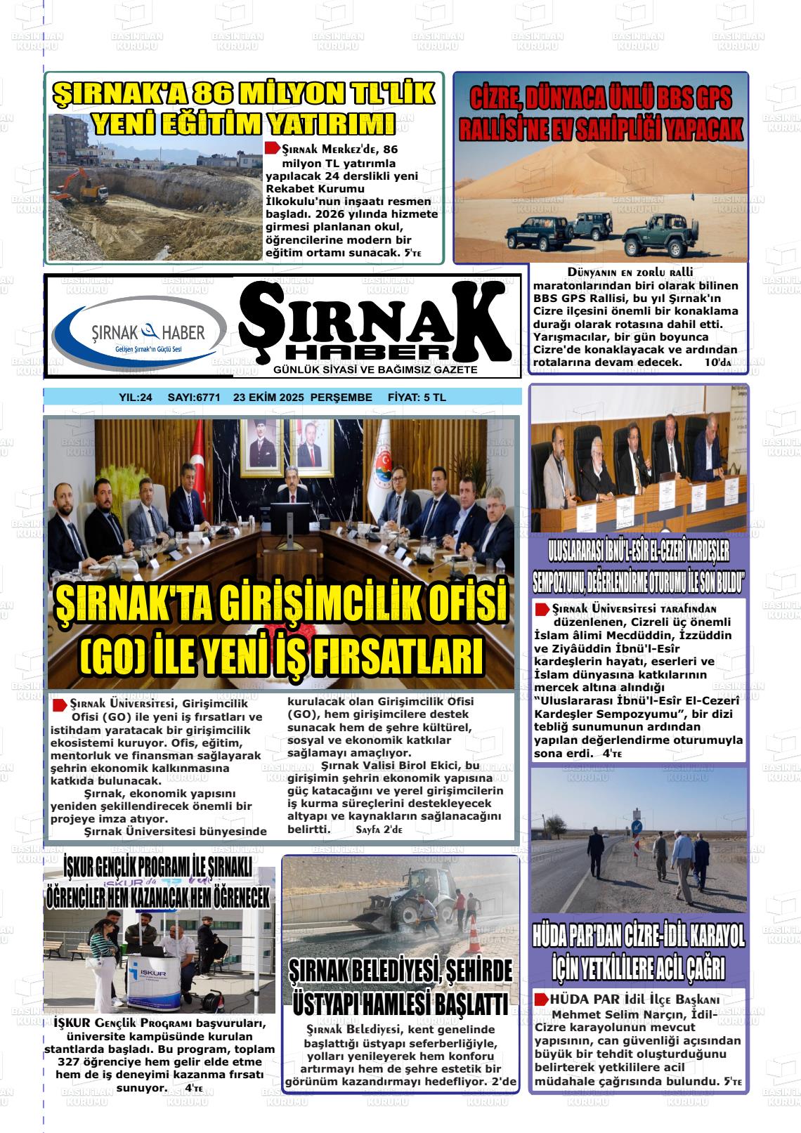 Şırnak Yerel Gazeteleri 18 Nisan 2026, Cumartesi Günü Manşeti