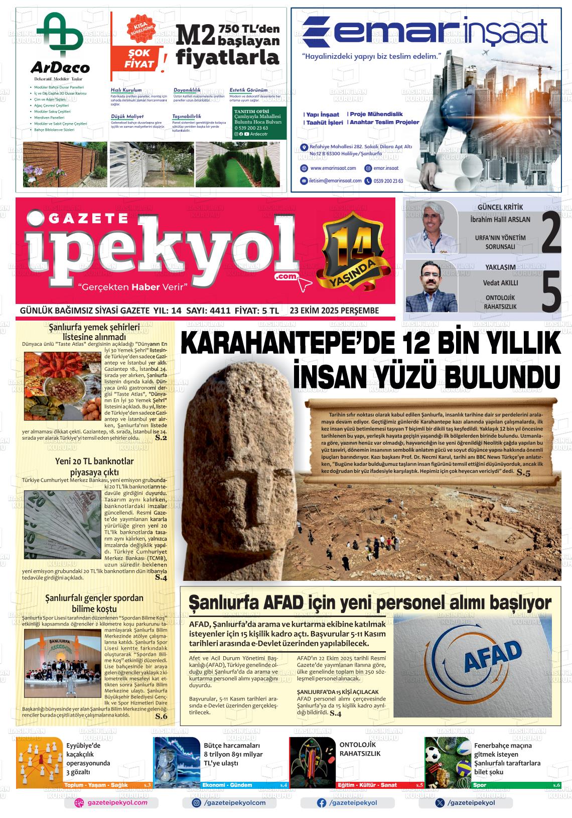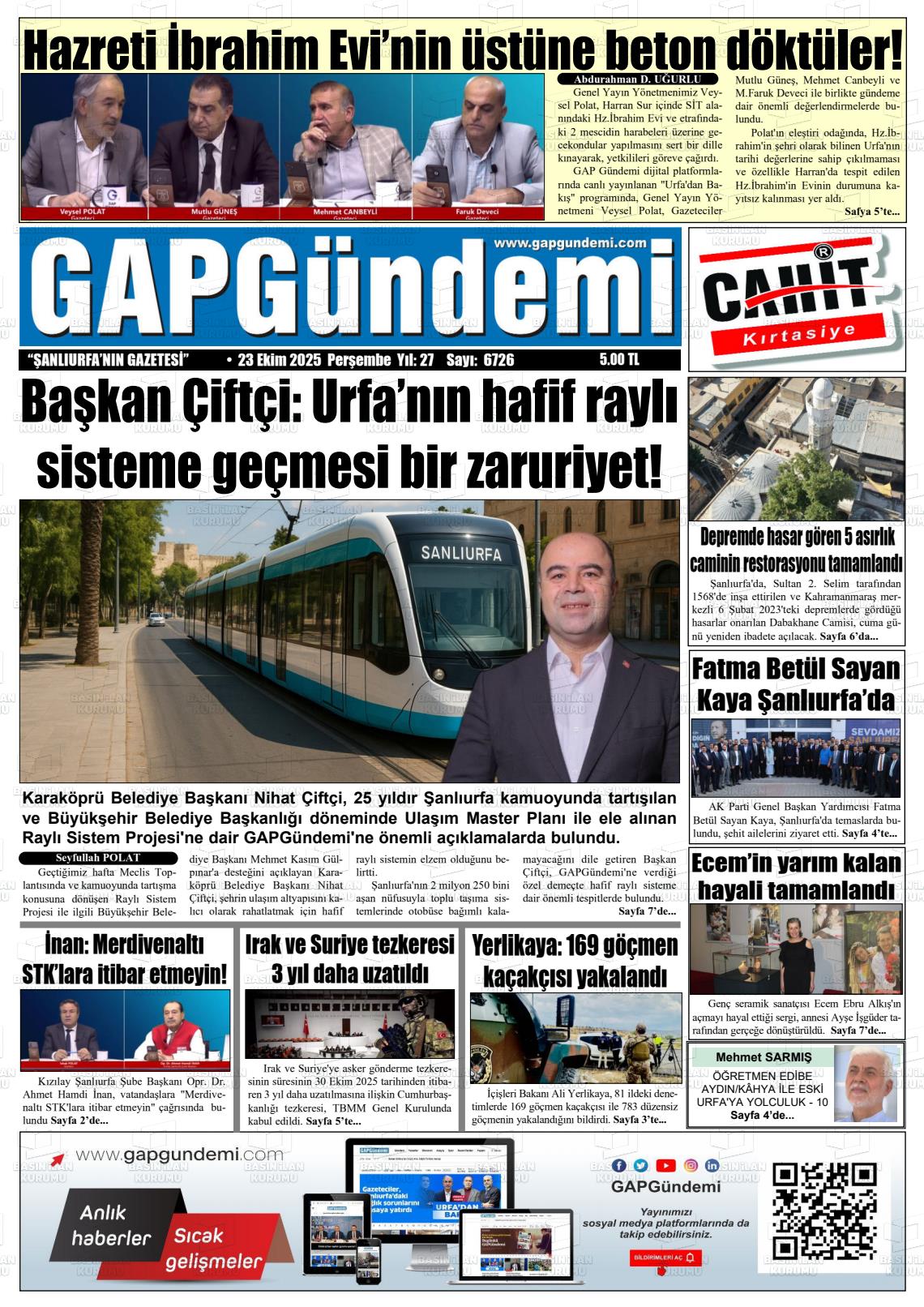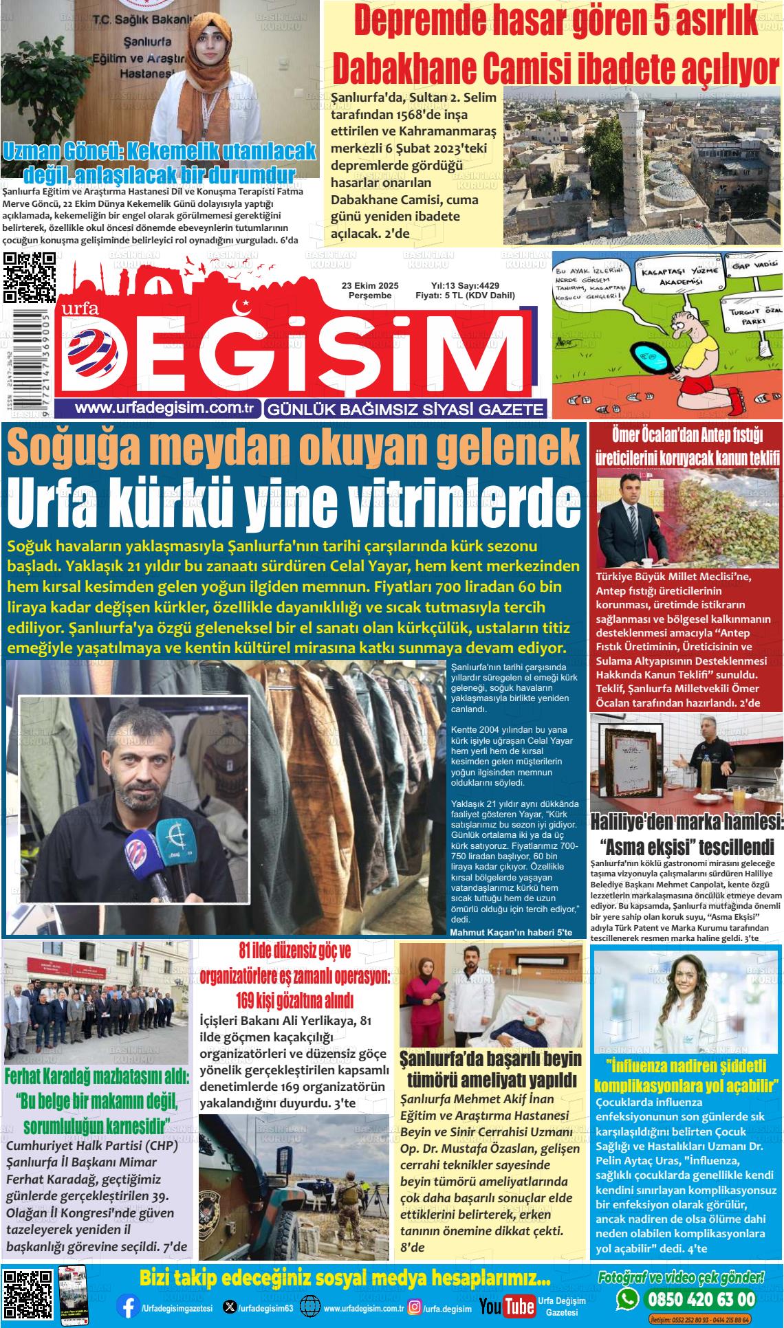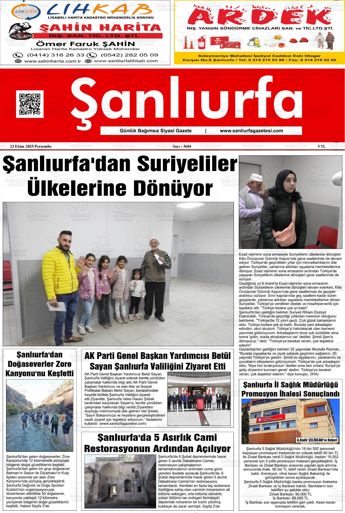 Şanlıurfa Yerel Gazeteleri 18 Nisan 2026, Cumartesi Günü Manşeti