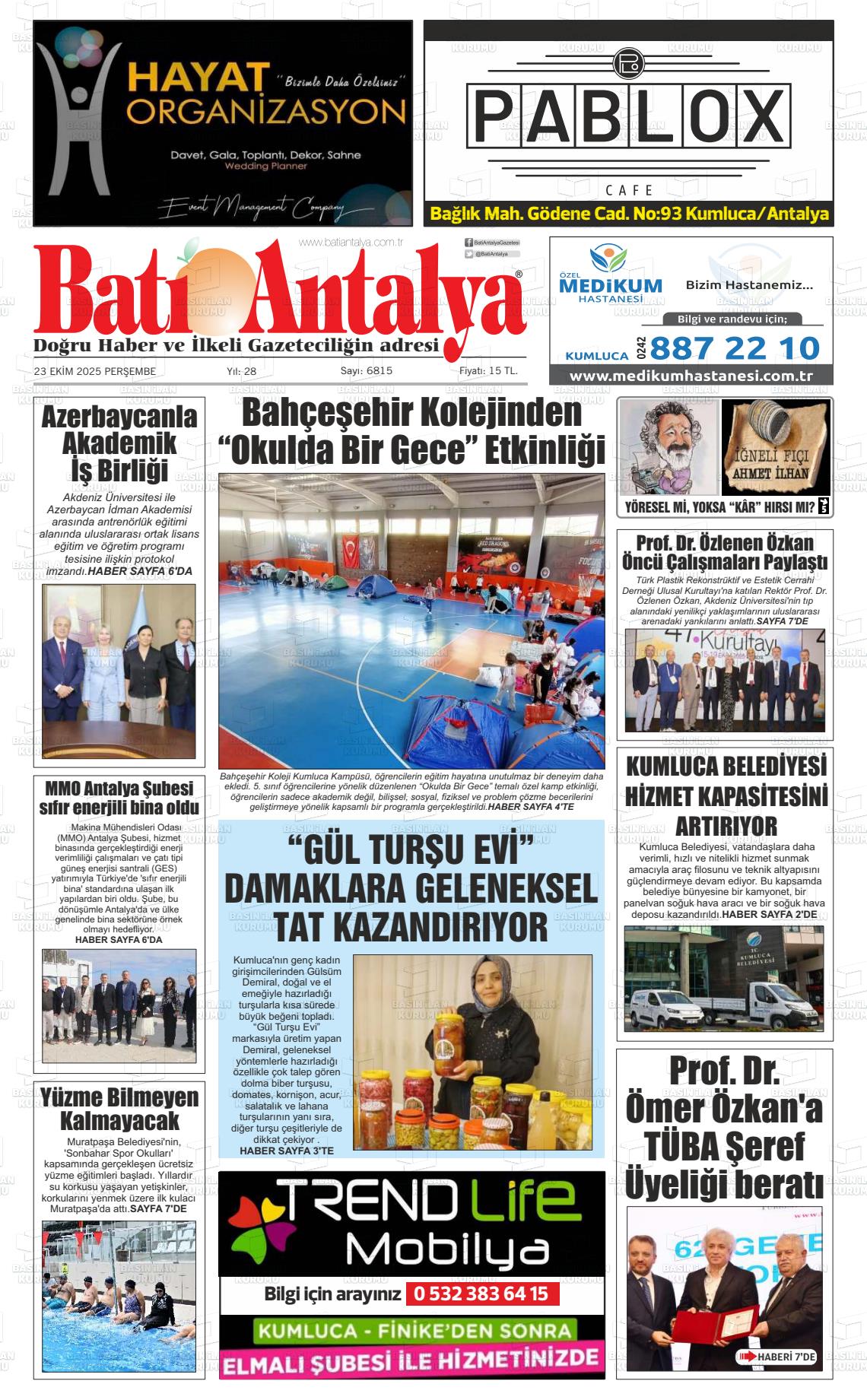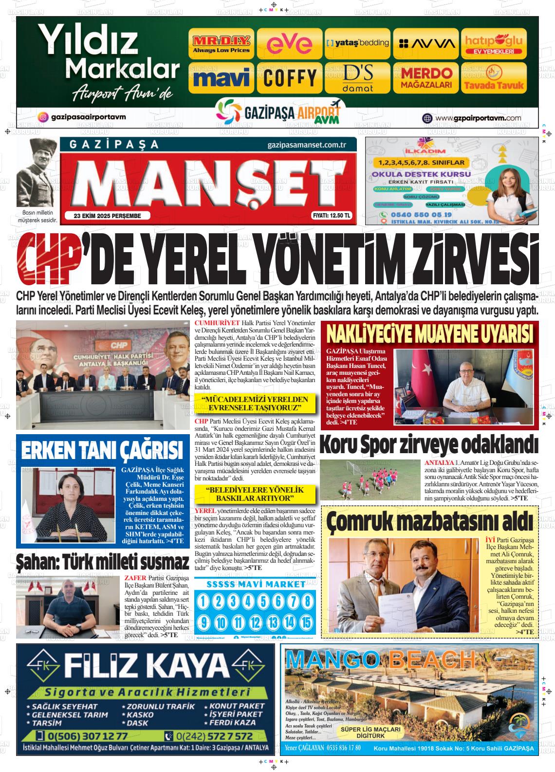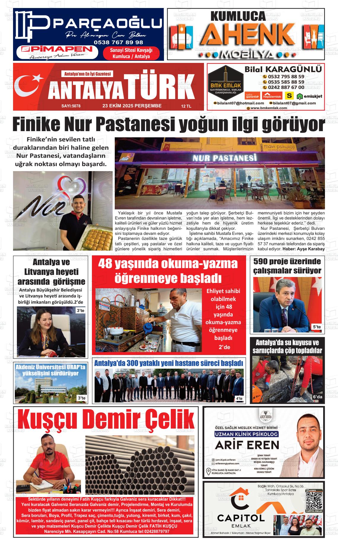 Antalya Yerel Gazeteleri 18 Nisan 2026, Cumartesi Günü Manşeti