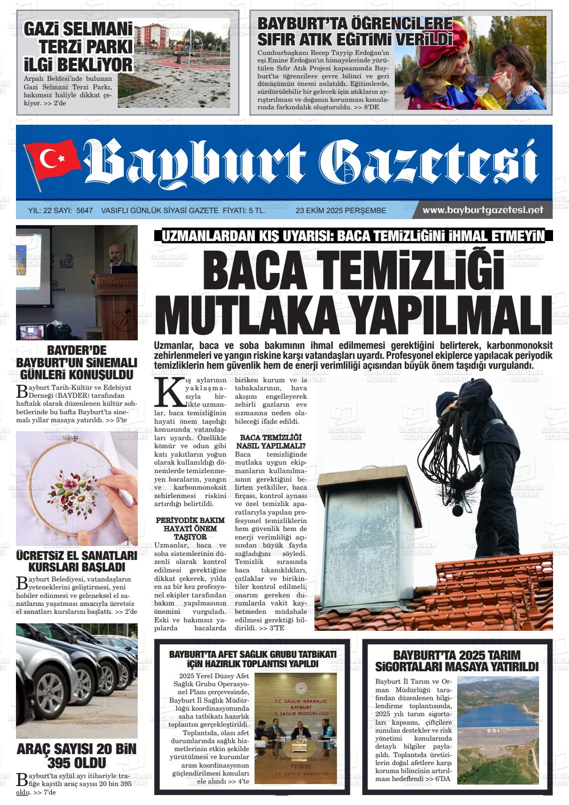Bayburt Yerel Gazeteleri 18 Nisan 2026, Cumartesi Günü Manşeti