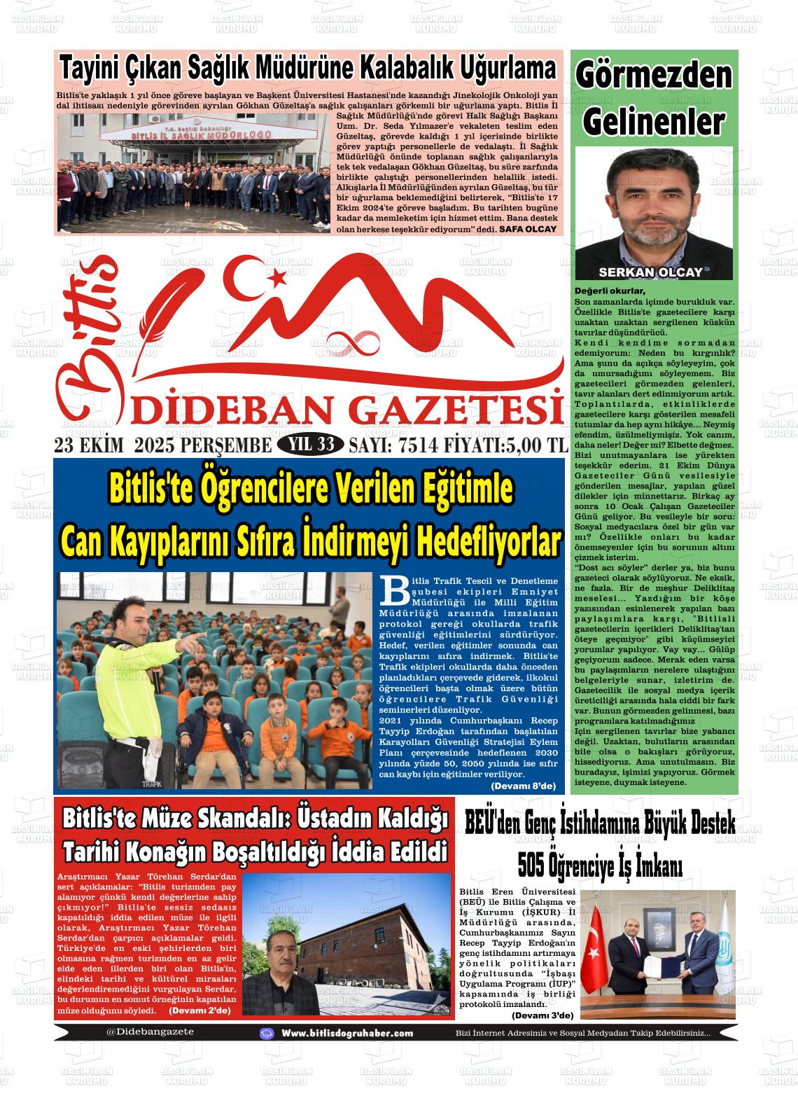 Bİtlİs Yerel Gazeteleri 18 Nisan 2026, Cumartesi Günü Manşeti