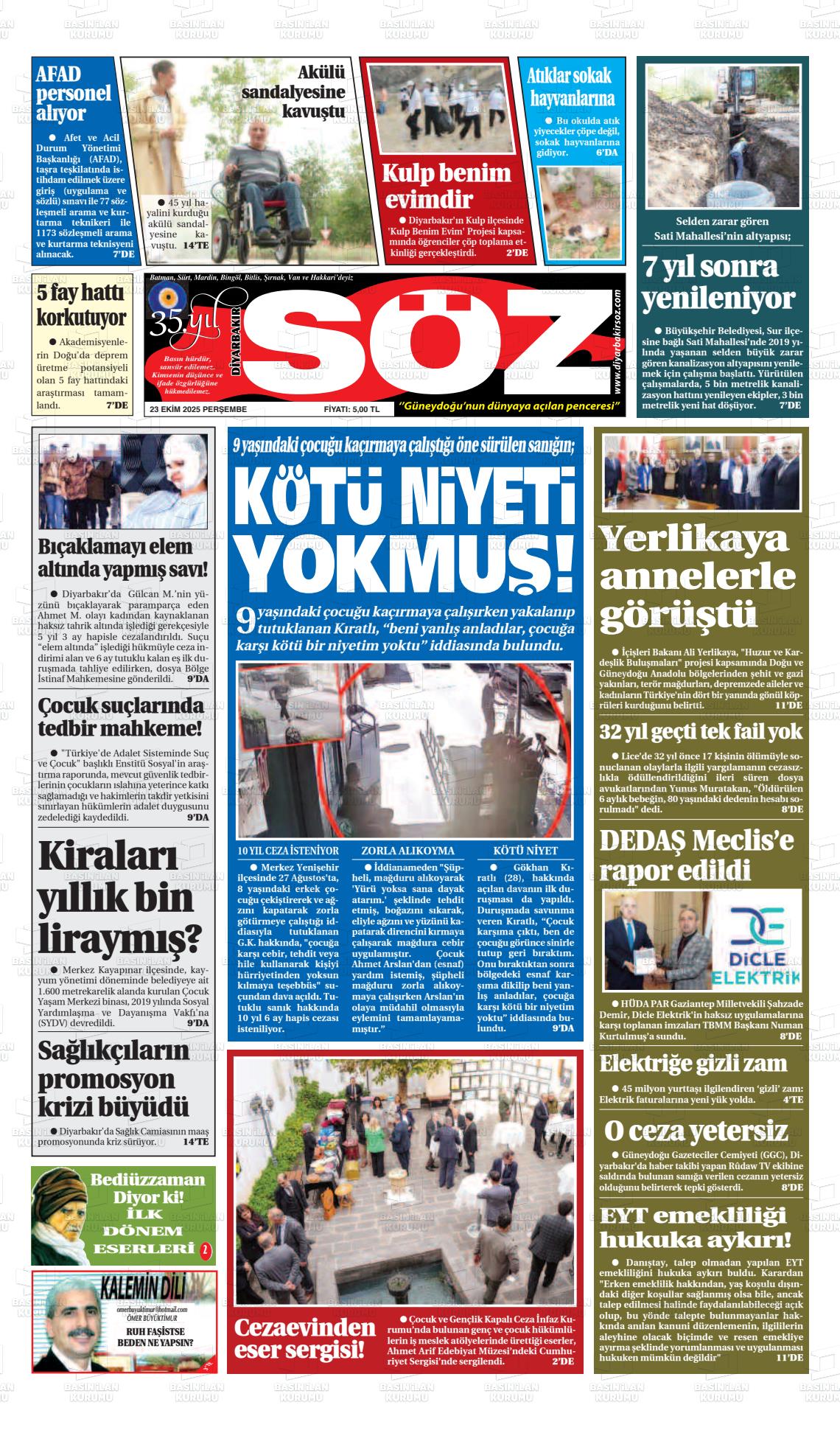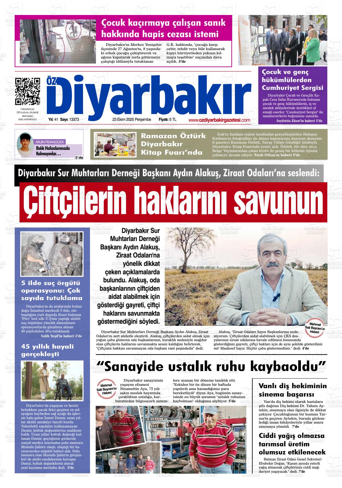 Dİyarbakır Yerel Gazeteleri 18 Nisan 2026, Cumartesi Günü Manşeti