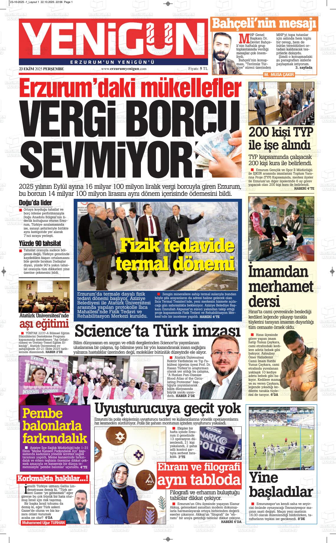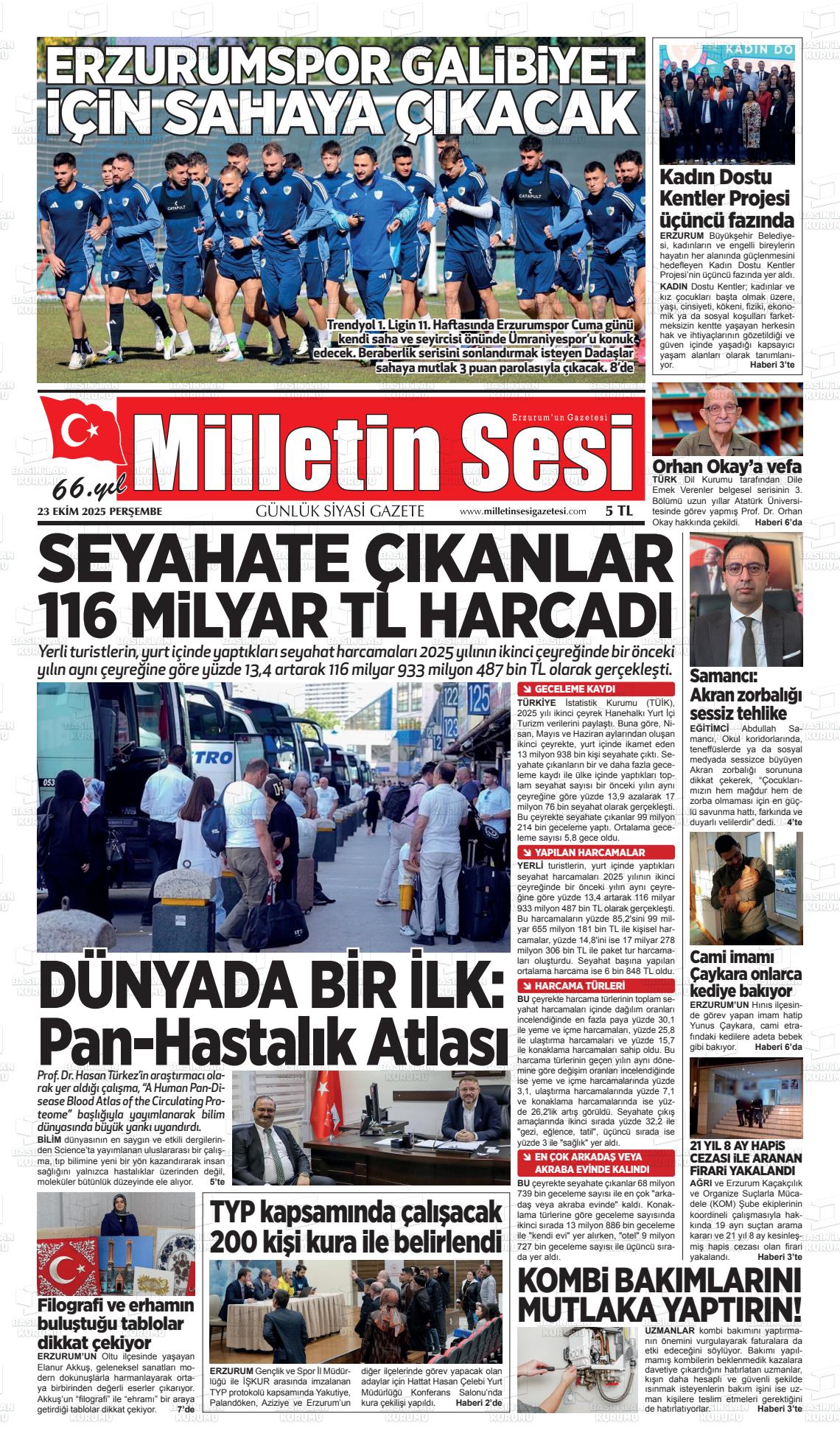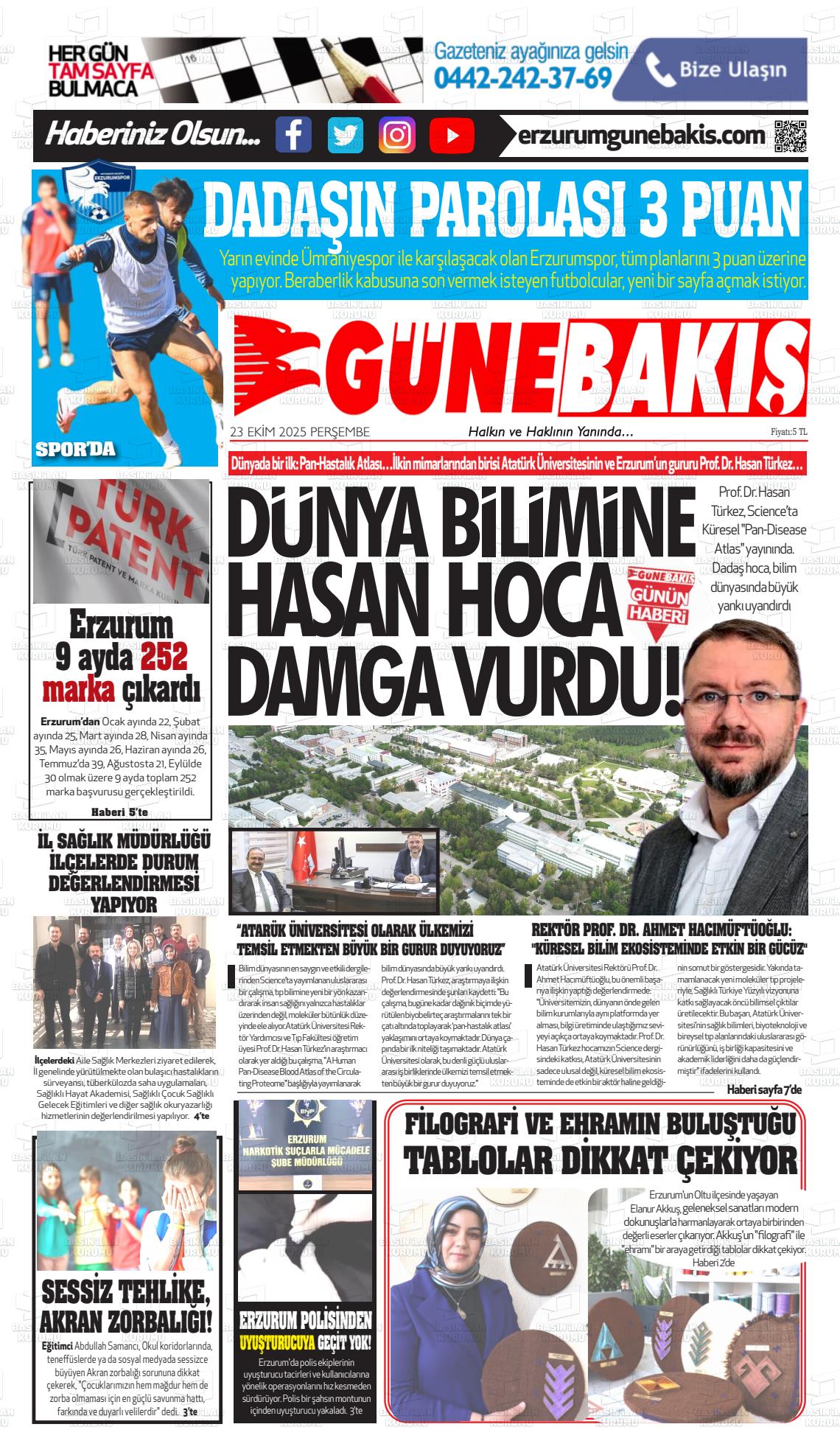 Erzurum Yerel Gazeteleri 18 Nisan 2026, Cumartesi Günü Manşeti