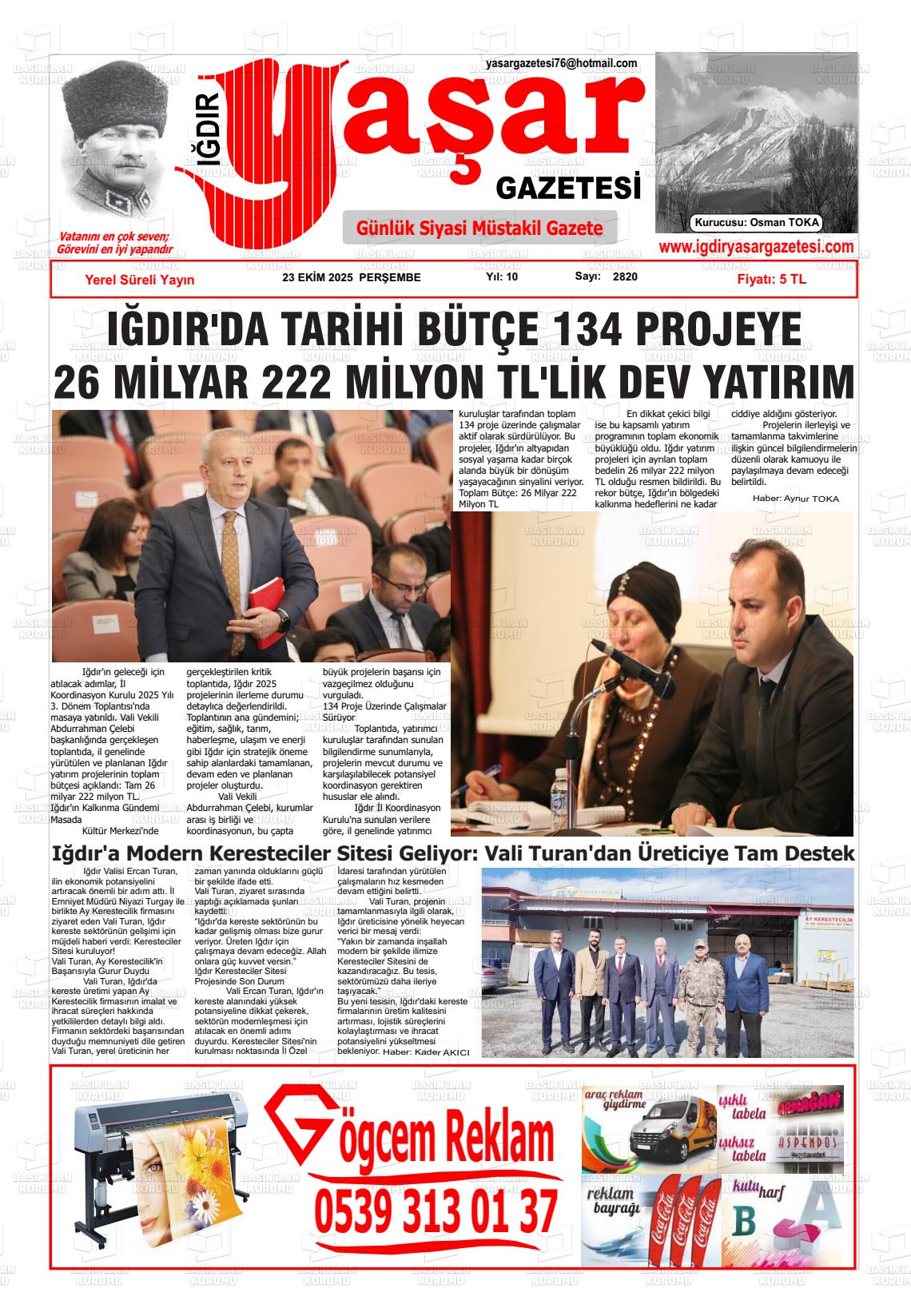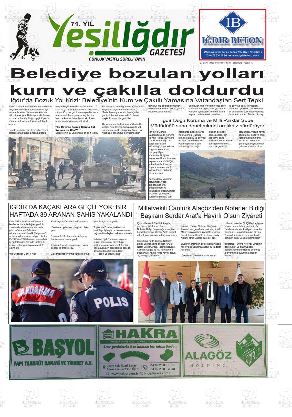 Iğdır Yerel Gazeteleri 18 Nisan 2026, Cumartesi Günü Manşeti