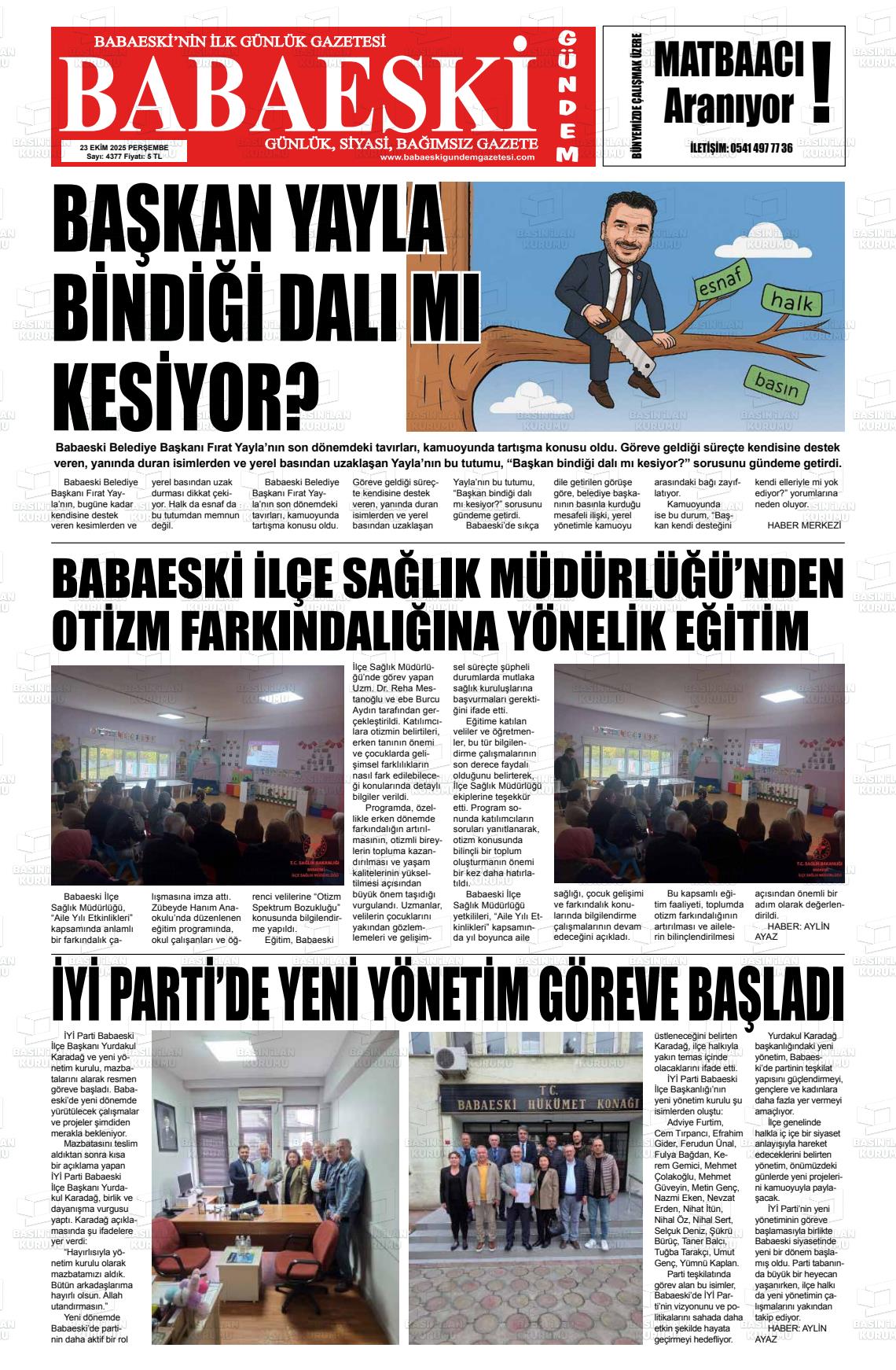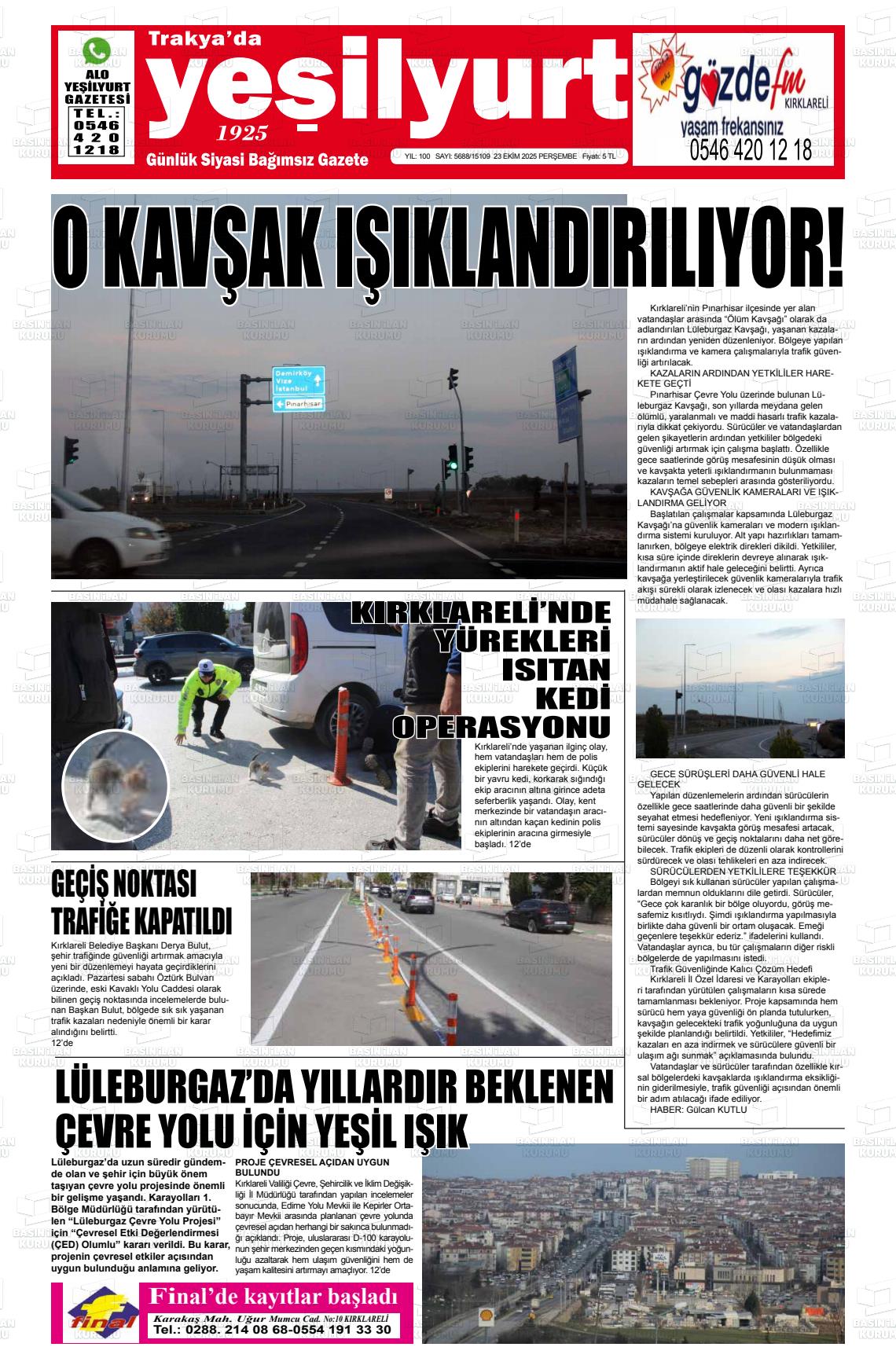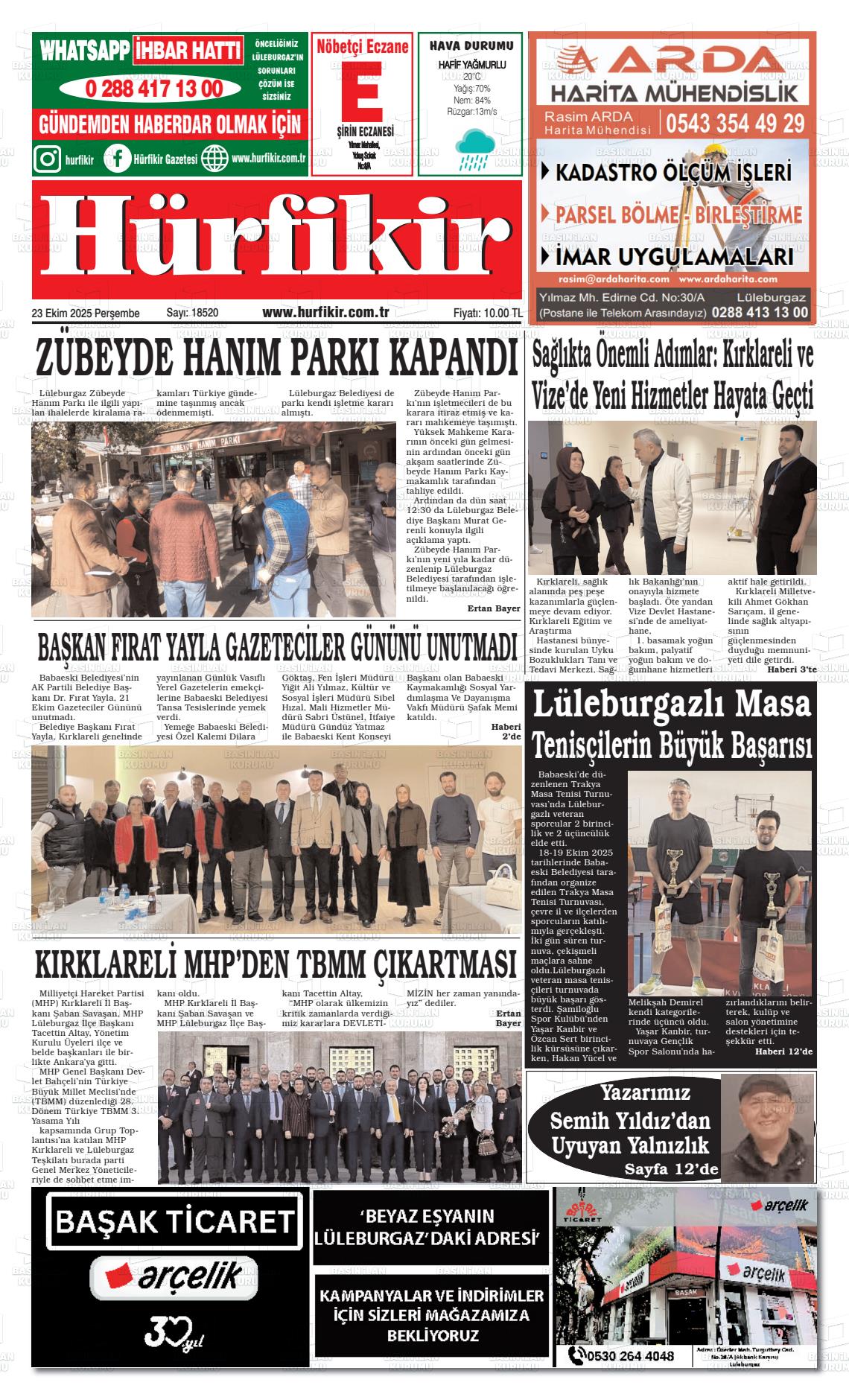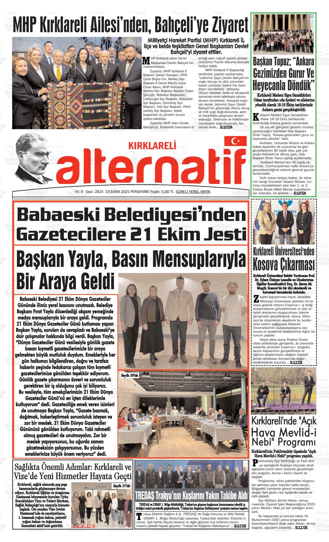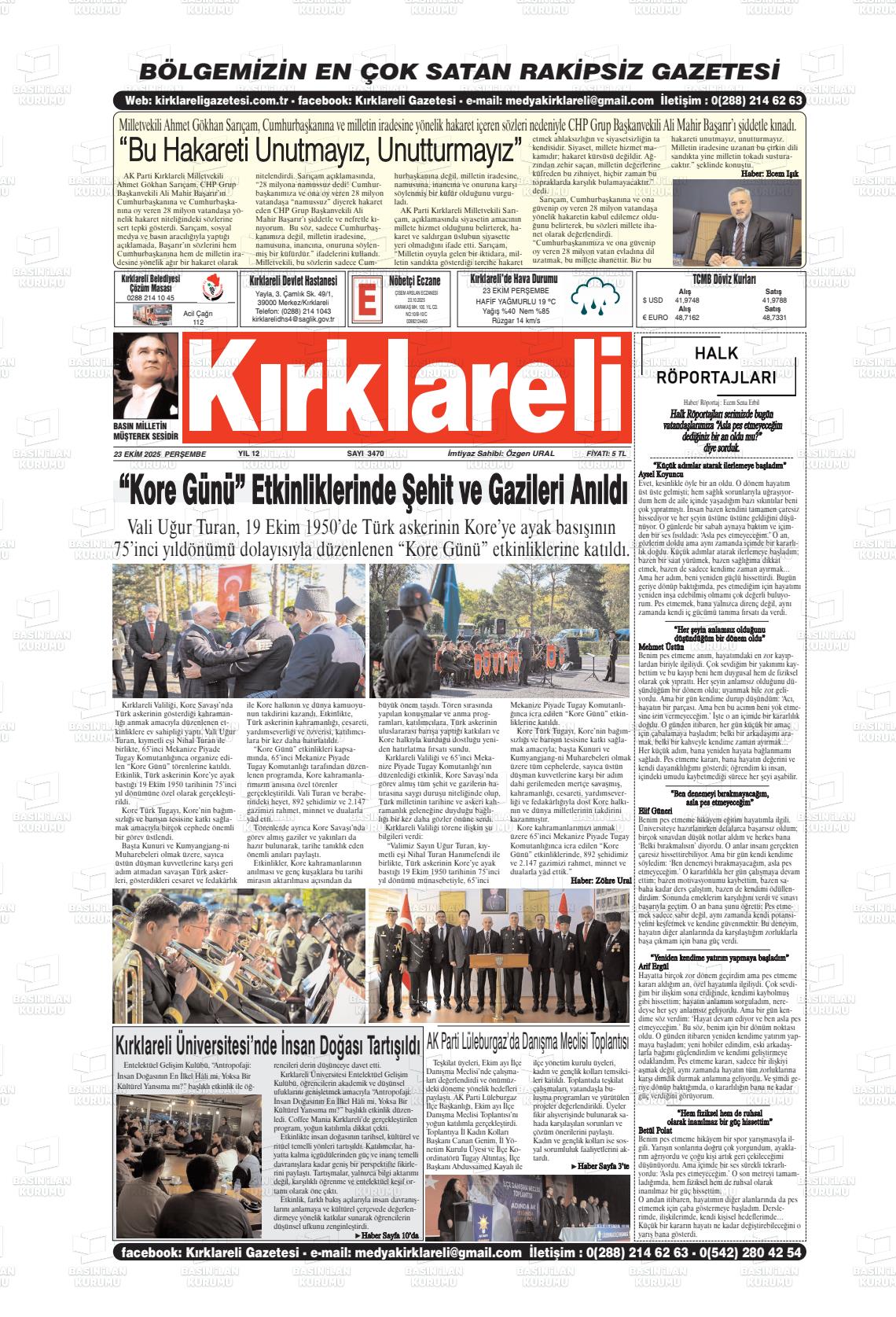 Kırklarelİ Yerel Gazeteleri 18 Nisan 2026, Cumartesi Günü Manşeti