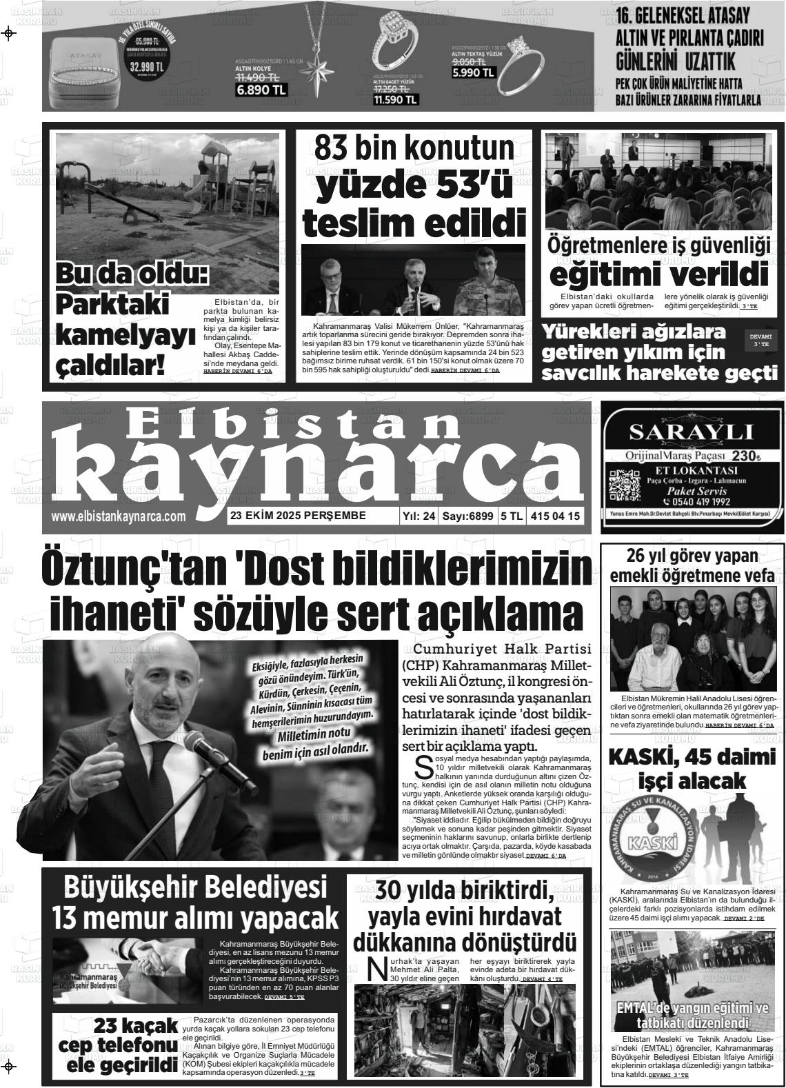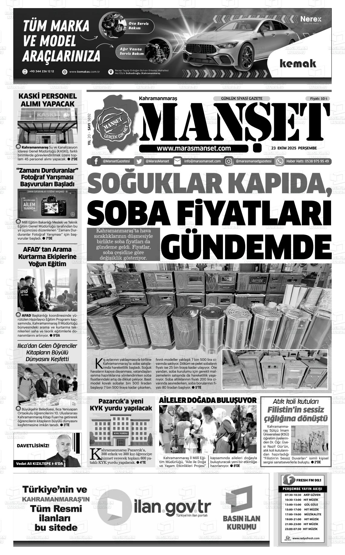 Kahramanmaraş Yerel Gazeteleri 18 Nisan 2026, Cumartesi Günü Manşeti