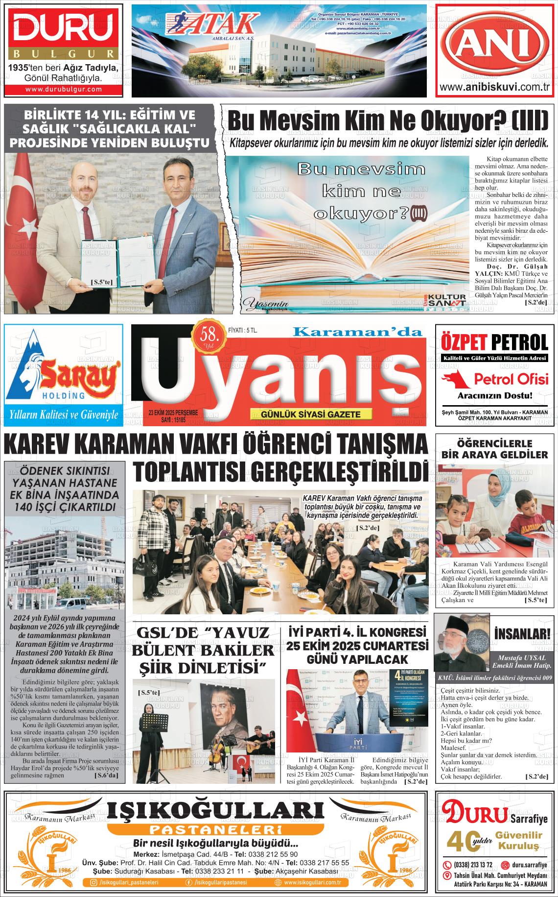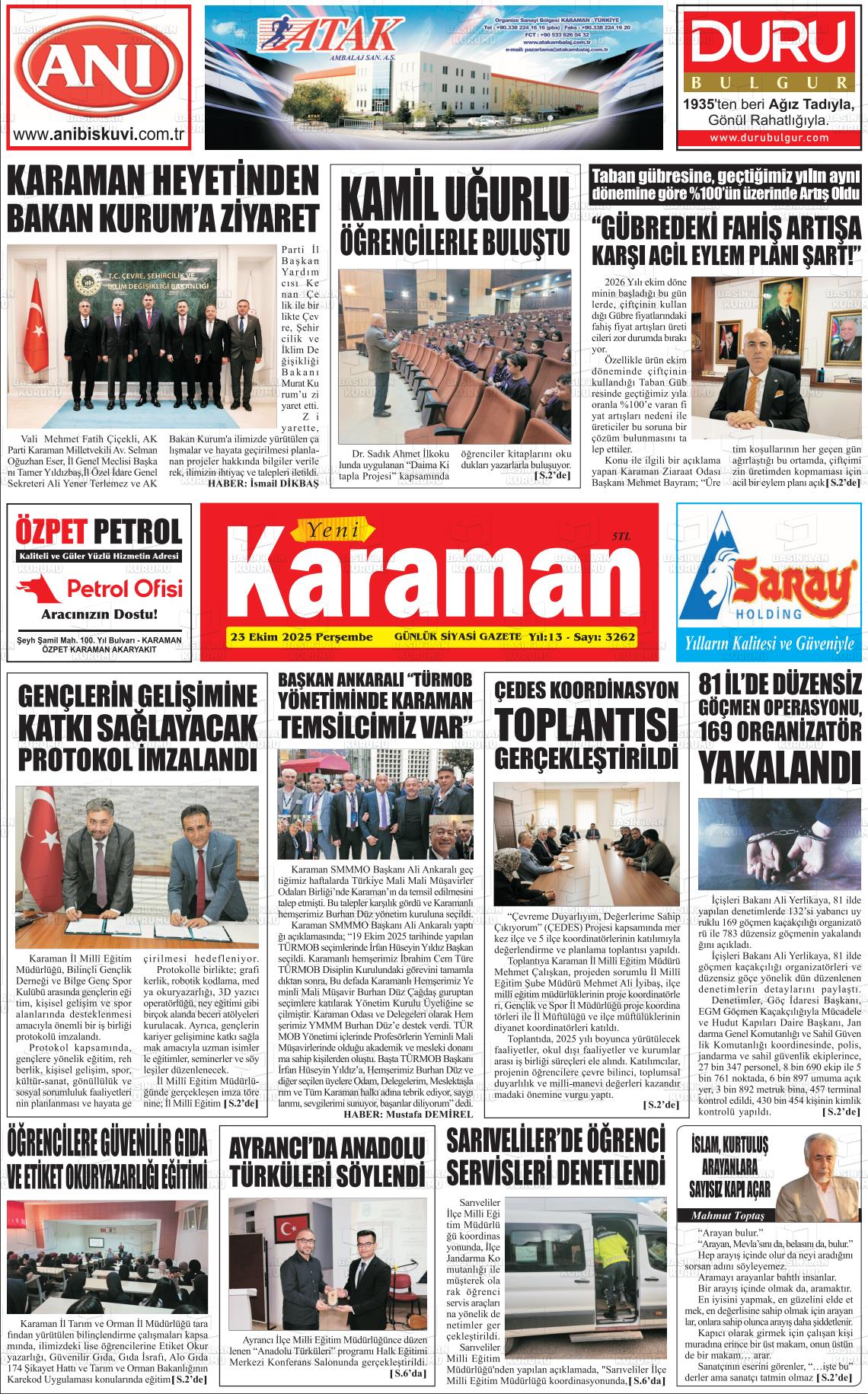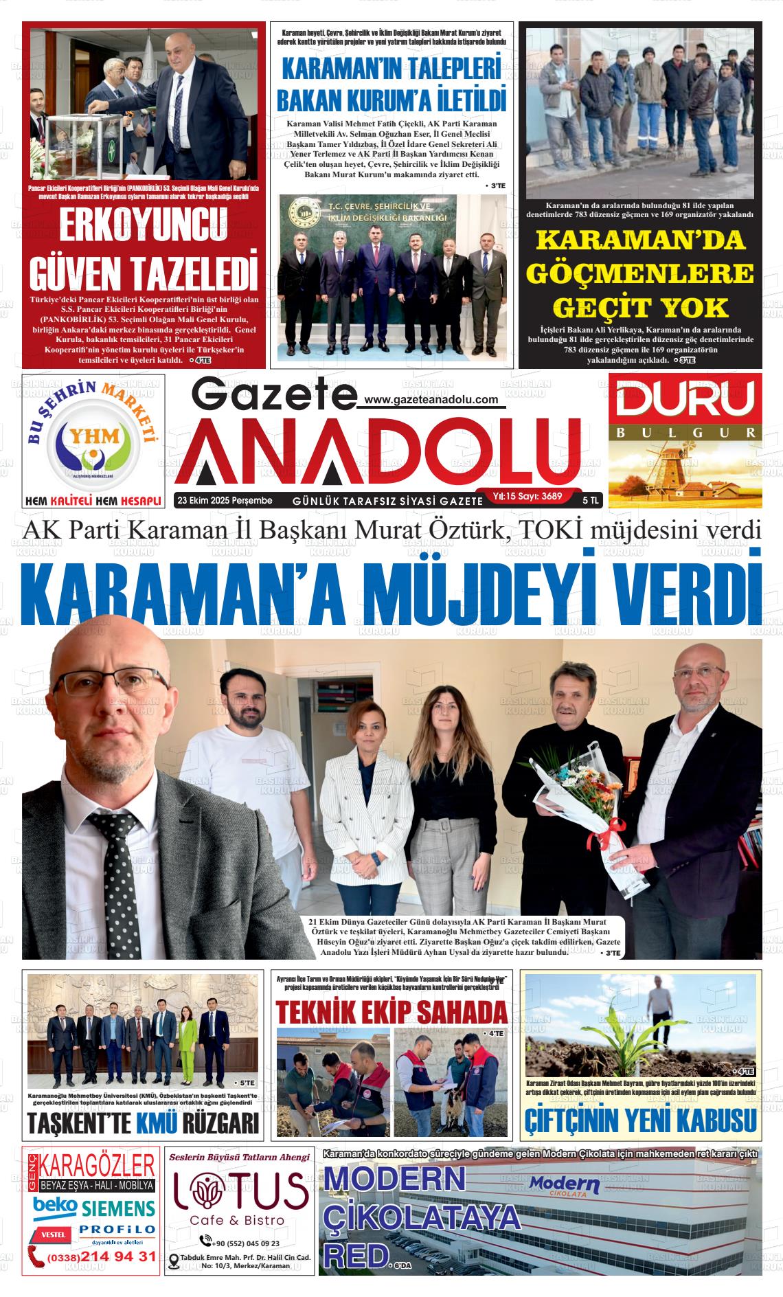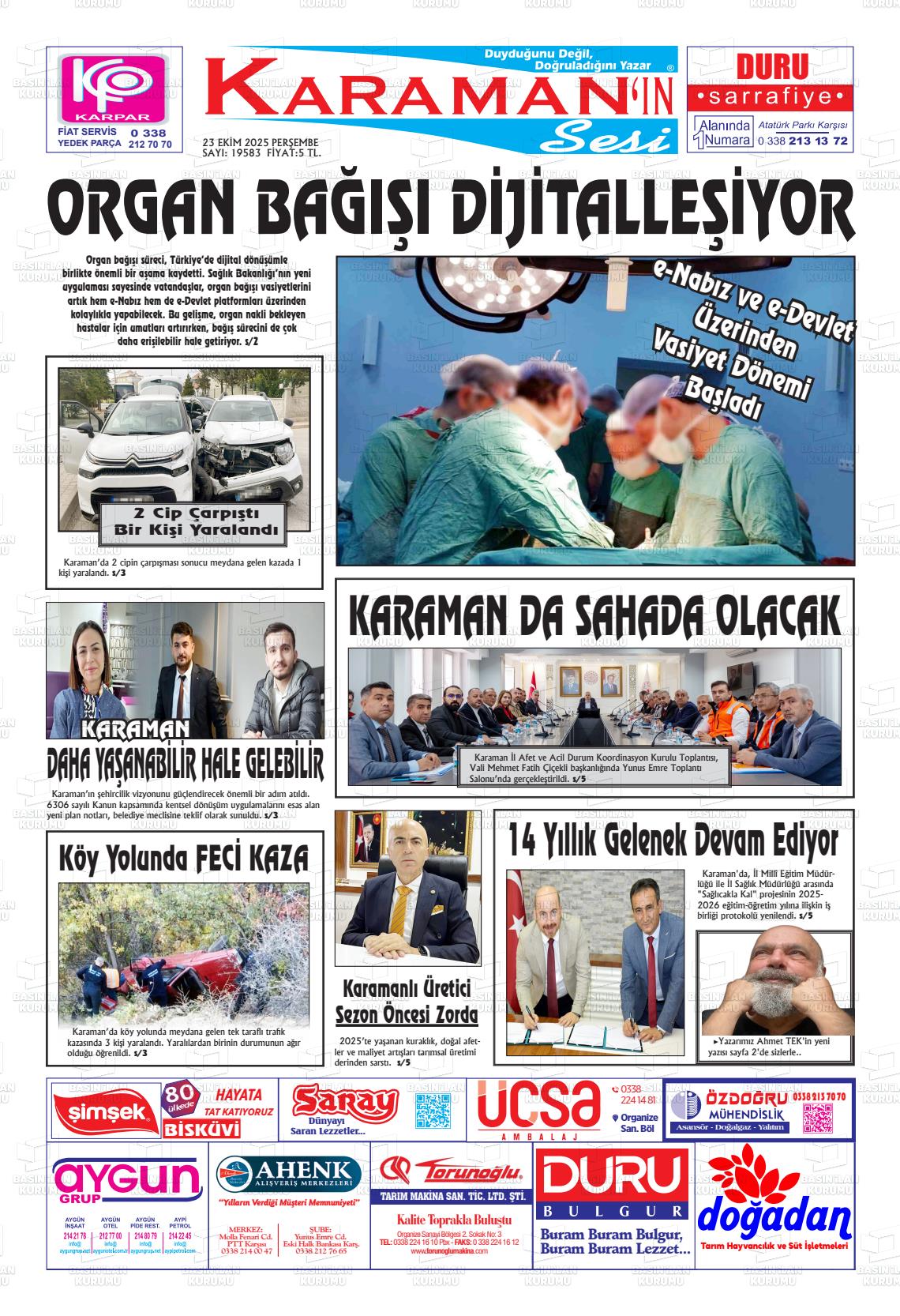 Karaman Yerel Gazeteleri 18 Nisan 2026, Cumartesi Günü Manşeti