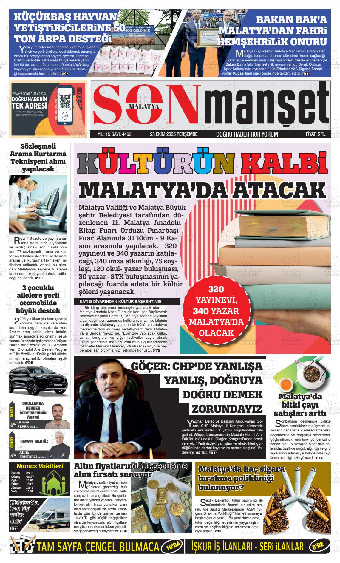 Malatya Yerel Gazeteleri 18 Nisan 2026, Cumartesi Günü Manşeti