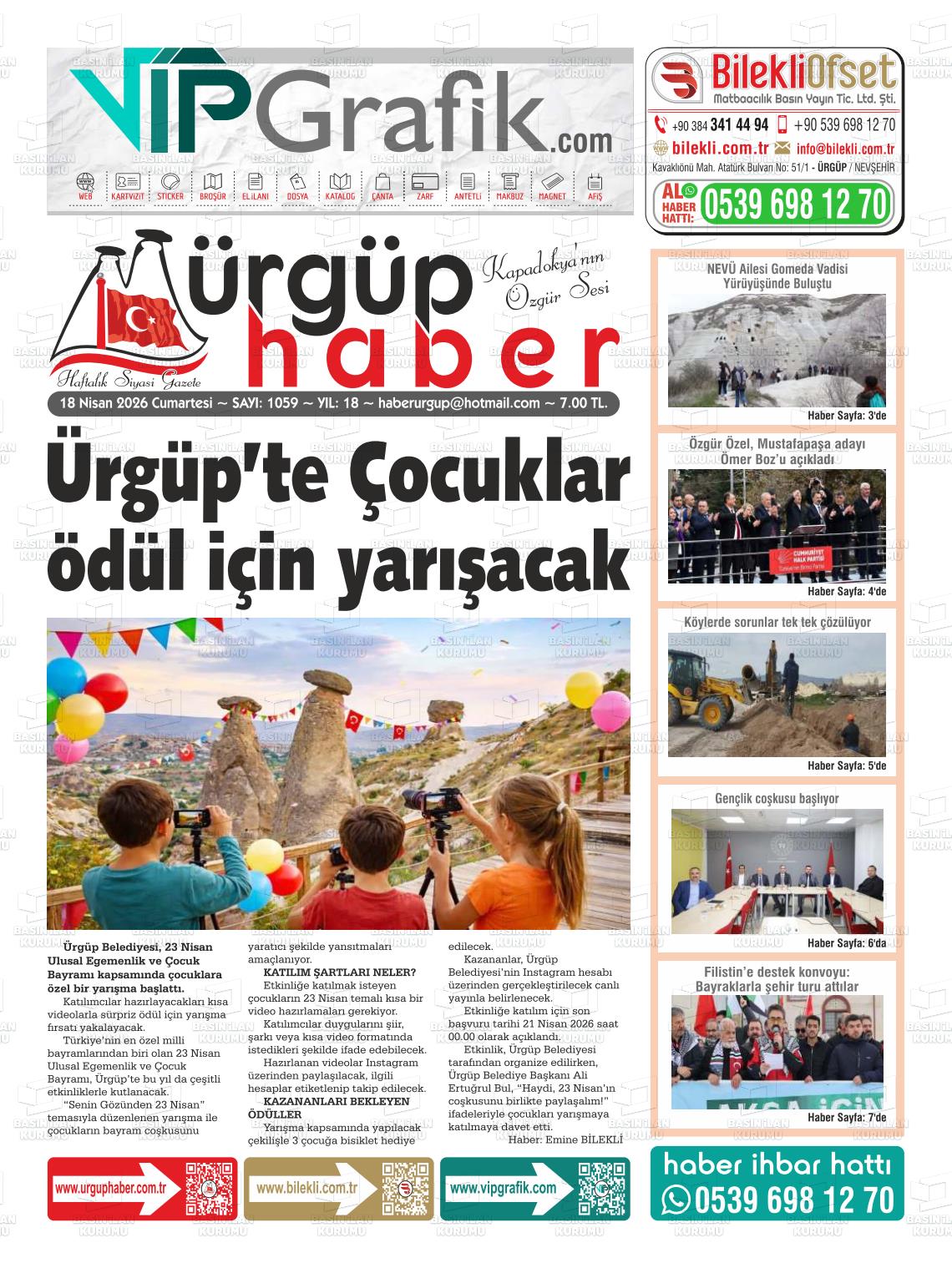 Nevşehİr Yerel Gazeteleri 18 Nisan 2026, Cumartesi Günü Manşeti