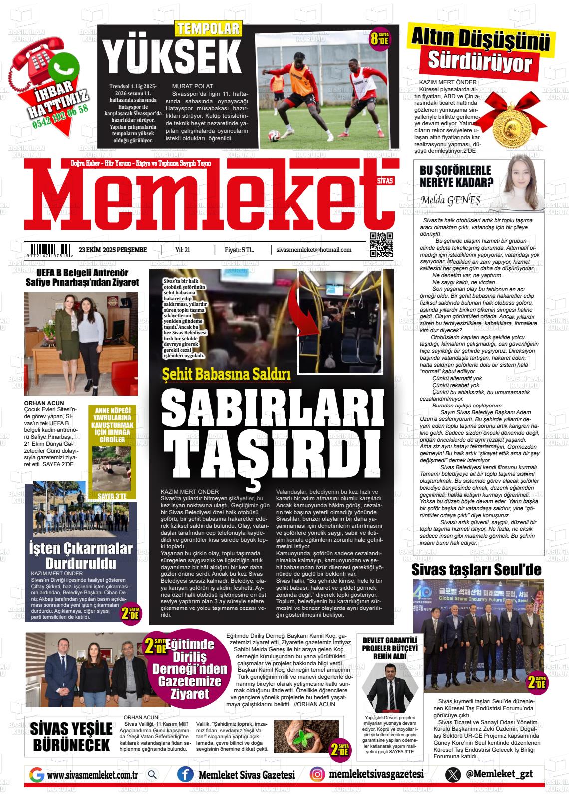 Sİvas Yerel Gazeteleri 18 Nisan 2026, Cumartesi Günü Manşeti