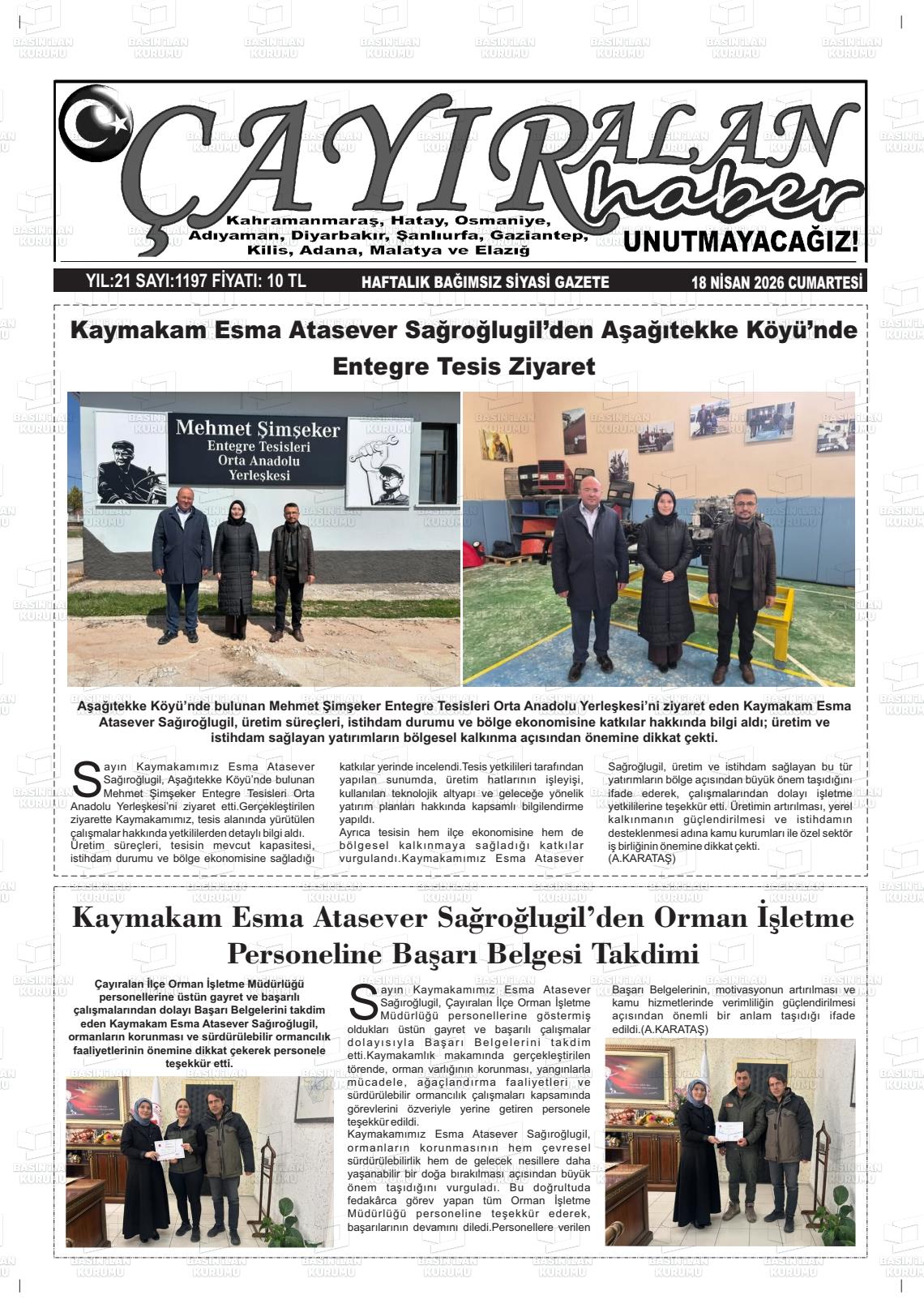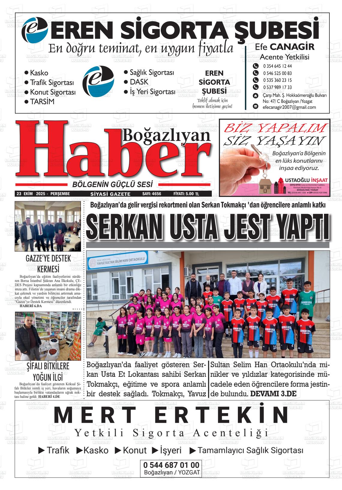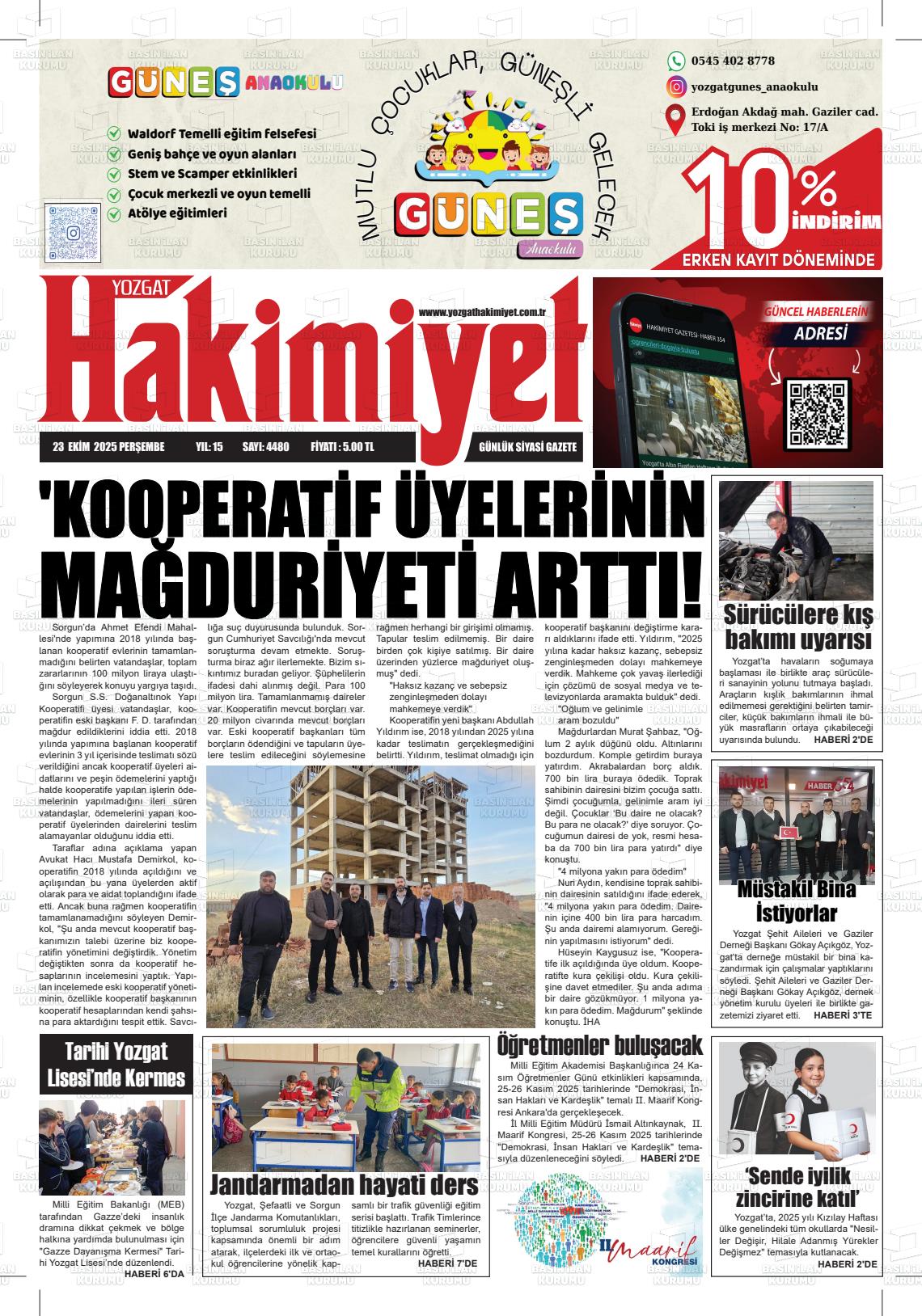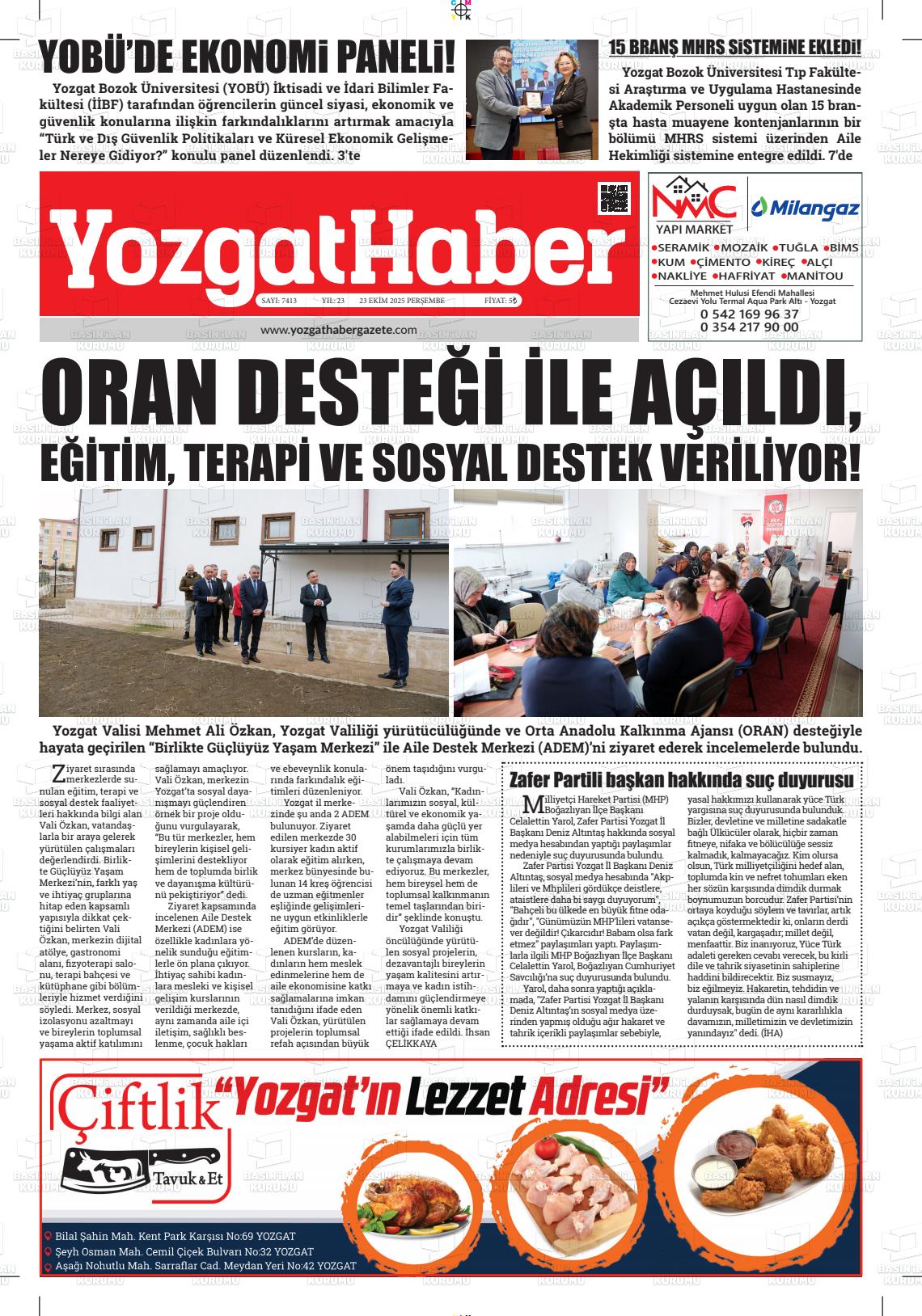 Yozgat Yerel Gazeteleri 18 Nisan 2026, Cumartesi Günü Manşeti