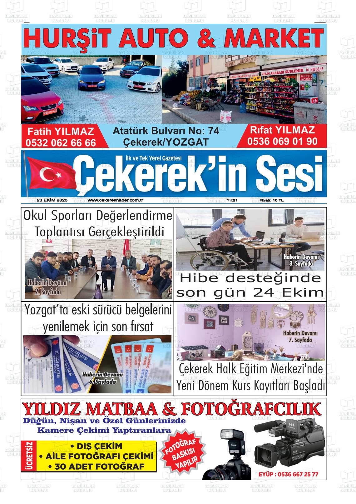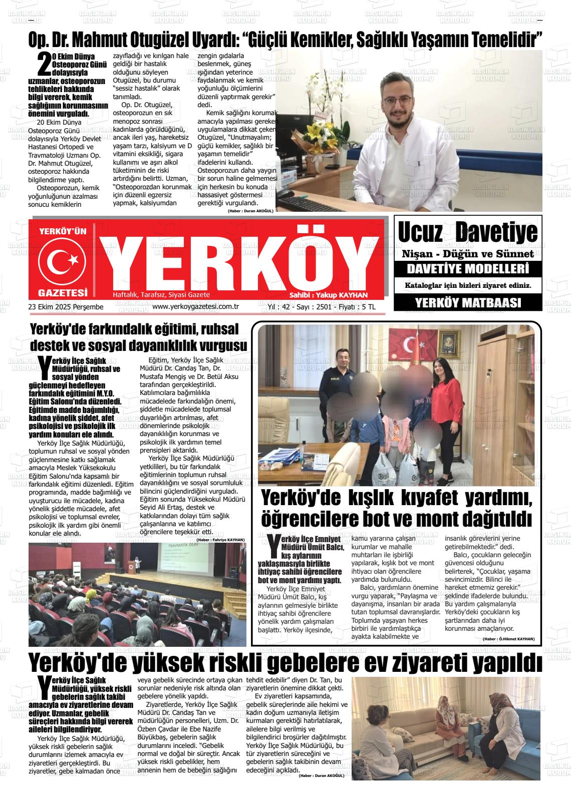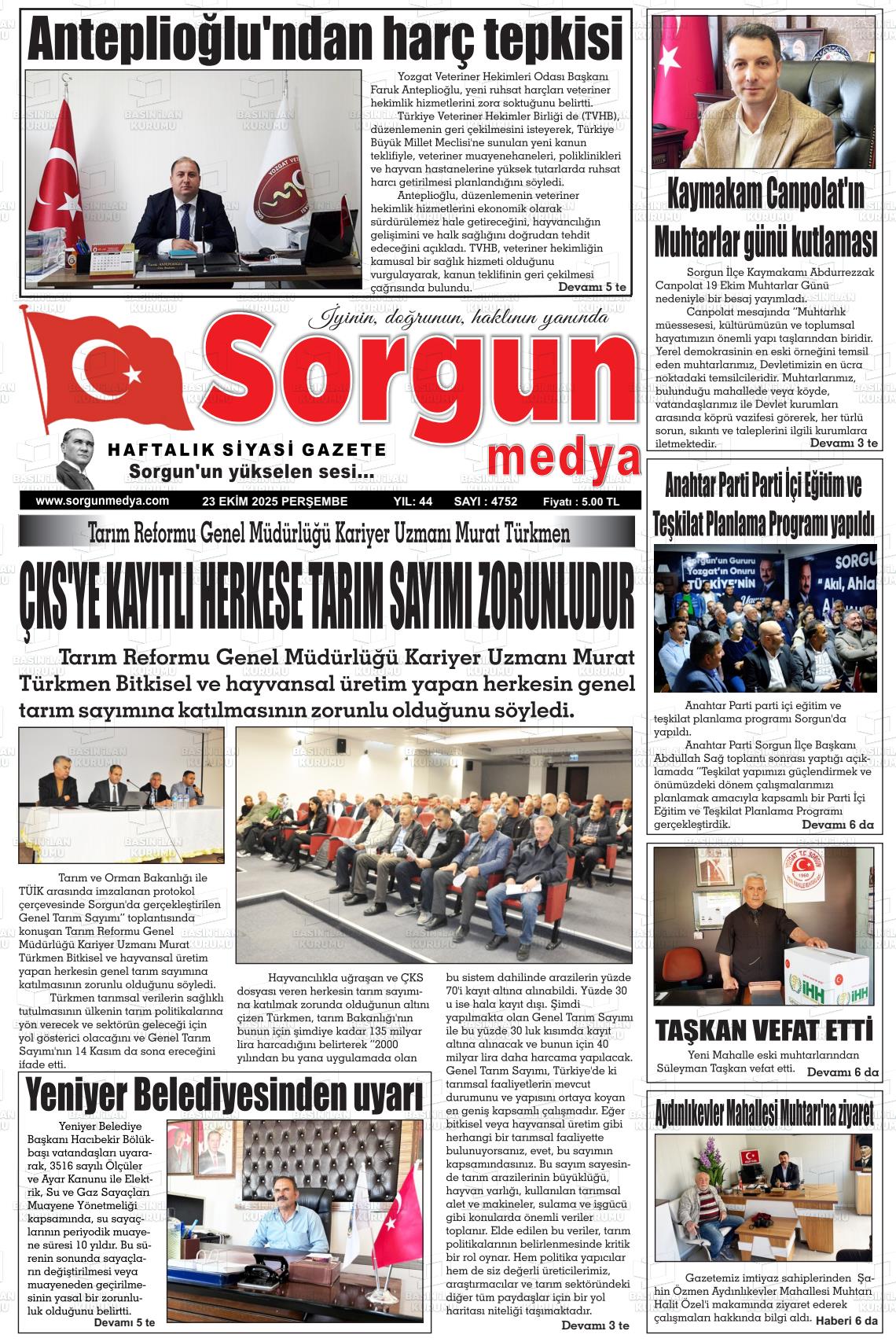 Yozgat Yerel Gazeteleri 23 Ekim 2025, Perşembe Günü Manşeti